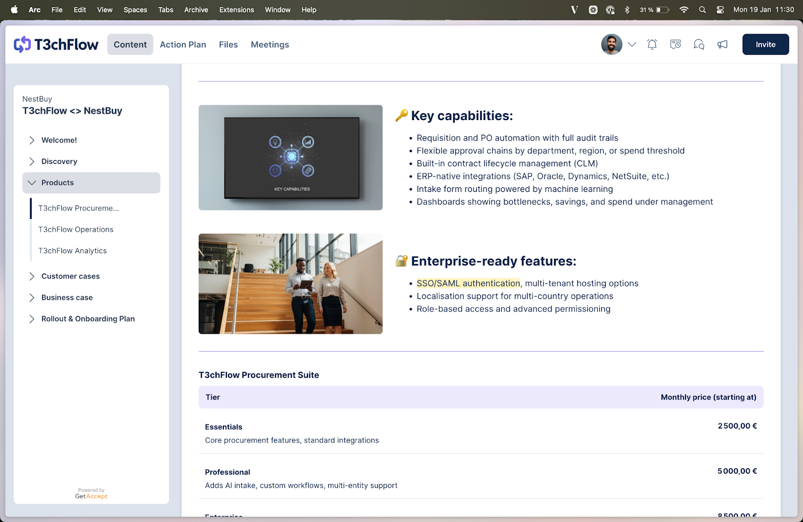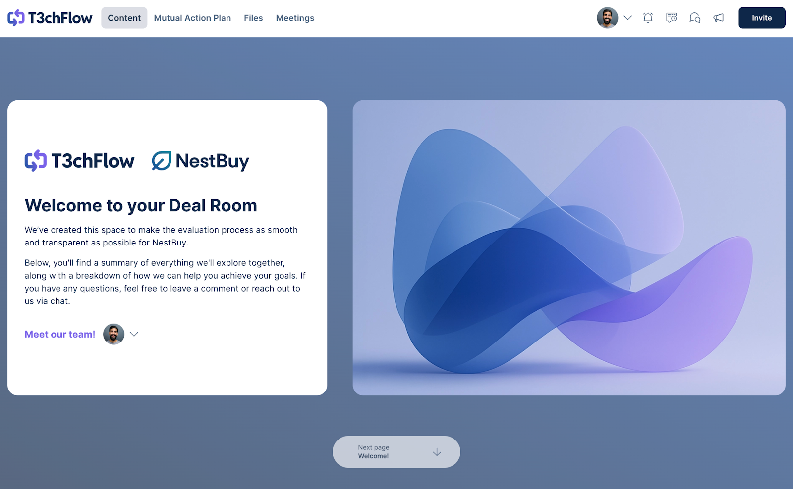 After researching a lot of rooms, we created TechFlow - an imaginary company created to showcase what a great digital sales room looks like.