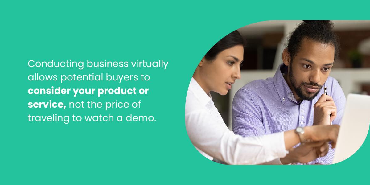 Digital sales rooms eliminate the distance between your sales team and potential buyers. This is a massive advantage because it breaks down some barriers to a sale. For example, if stakeholders are dealing with fewer resources than usual, any additional costs might end a potential sale right away. Conducting business virtually allows potential buyers to consider your product or service, not the price of traveling to watch a demo.