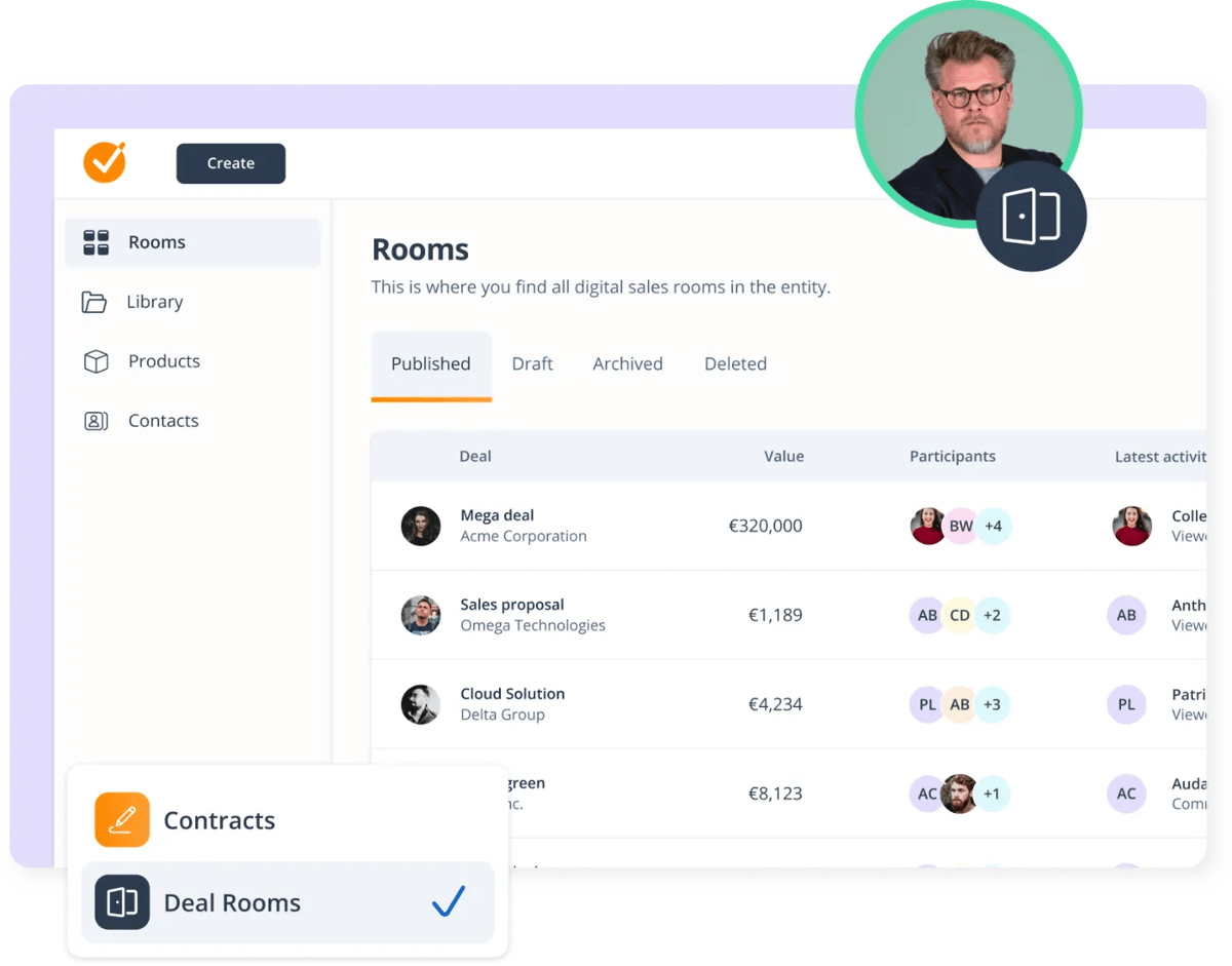 A Deal Room is a place where you meet your buyer; a virtual space for you and them to manage the complexities of a deal in a simple way.